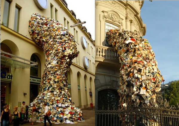 Devant ces tourbillons de livres, subtilement posés sur des trames et fils métalliques invisibles, on ressent - ou non -, on est ému jusqu'au tréfonds - ou non -, on se sent inexorablement aspiré par ce vertige littéraire - ou non.