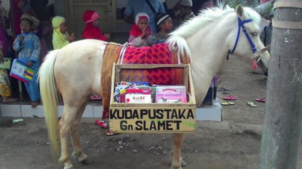 Indonésie: Luna, la petite jument sauvage devenue bibliothécaire-nomade pour enfants pauvres