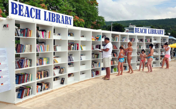La plupart des bibliothèques de plage, de plus en plus présentes l'été dans de nombreux pays, sont constituées, pour la grande majorité des cas, de cabanons en bois, d'étagères plus ou moins chargées...